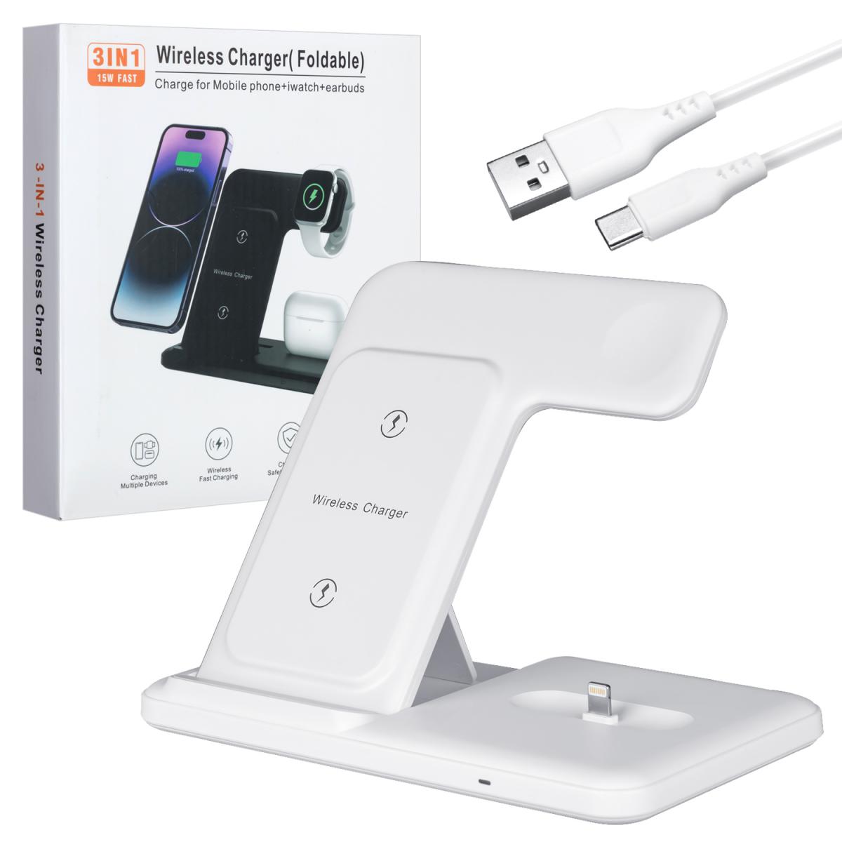 Беспроводная зарядка Q50 3 в 1 белая