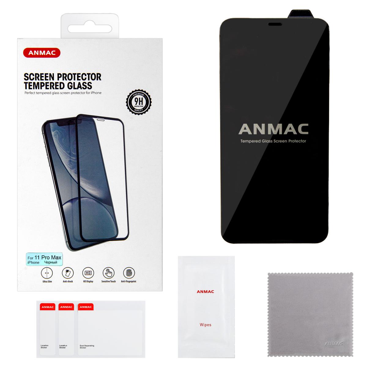 Защитное стекло IPh 11 Pro Max 3D ANMAC черное усиленное Арт.1137195