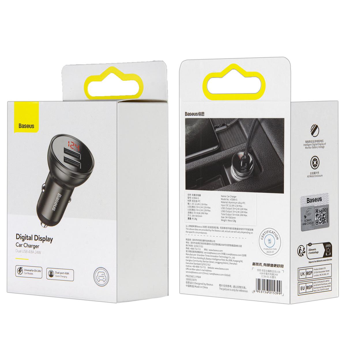 * Переходник АЗУ на 2 USB 24W Digital Display CCBX-0G Baseus черный