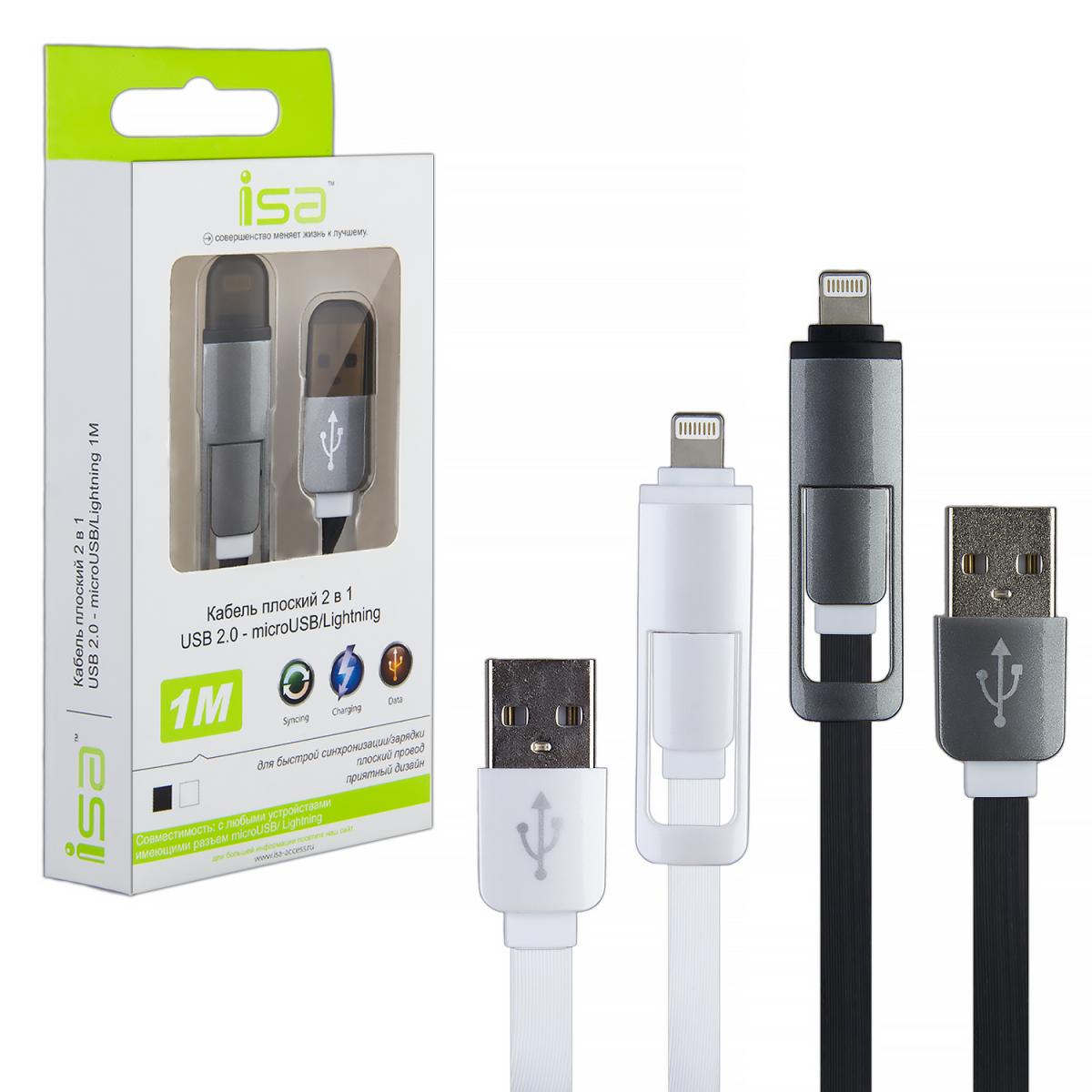 *Кабель 2 в 1 USB на Lightning + Micro USB 2.0 1.2 ISA