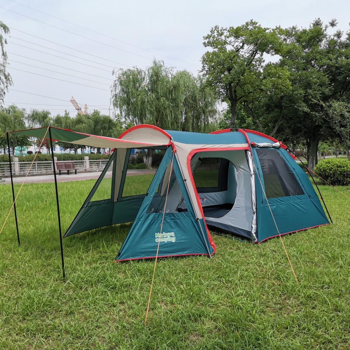 Палатка рассчитана на 4-х туристов. В каждой зоне отдыха есть окна с москитными сеточками. Есть большой тамбур, а также имеются два выхода. Внутри палатки есть карманы для мелких вещей и крюк для освещения.