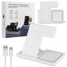 Беспроводная зарядка C300 (3 в1) Белый (40шт/кор)
