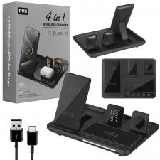 Беспроводная зарядка Q20 (4 в1) Чёрный (40шт/кор)